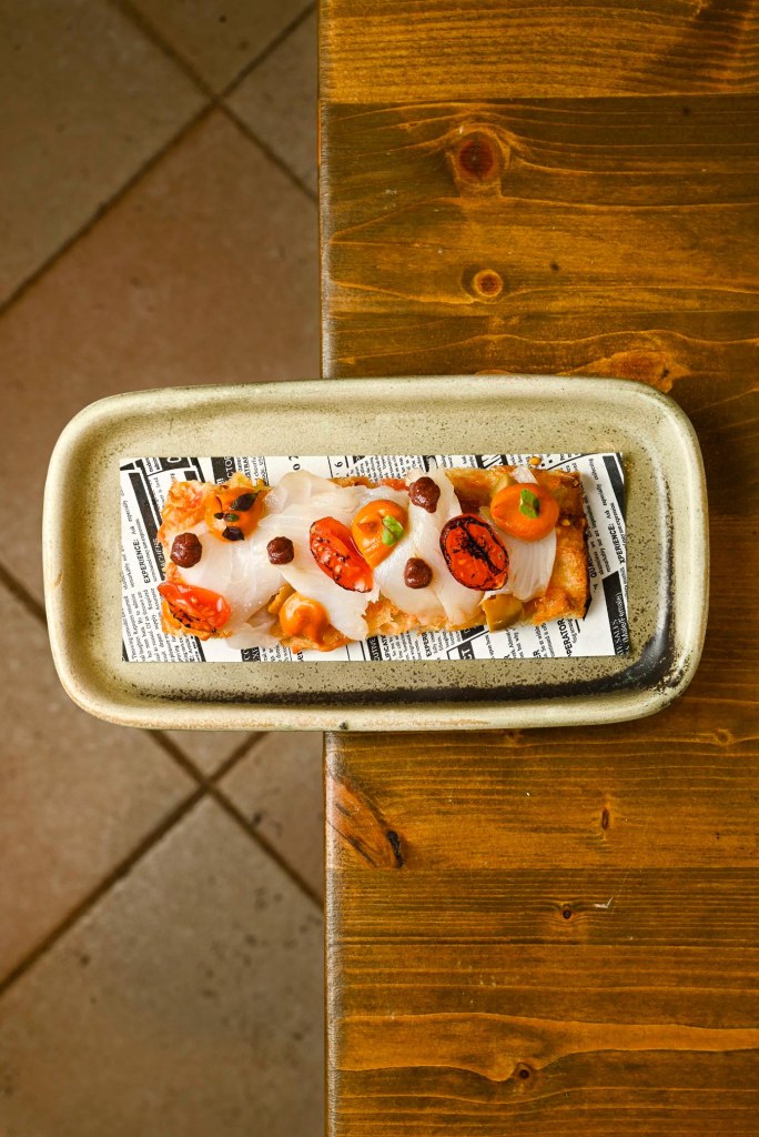 De entre sus tapas, destacan sobre todo la de pulpo, la gilda (que complementan con naranja, anchoa, piparra y boquerón) o la «bomba». Ésta es característica de toda esta parte de la ciudad catalana, que ya se ha extendido mucho más allá de sus límites y que consiste, de forma muy sintetizada, en una gran croqueta rellena de patata y complementada con salsa picante o brava. La de «La Mar Salada», sabrosa y un clásico con voz propia de su carta y menú, va rellena de boloñesa de pulpo y con un punto de salsa brava por encima (fotos de la sesión en la parte inferior). Su aspecto y tamaño son más que reseñables. Ellos, además y lejos de quererse adueñar de este plato, rinden tributo a sus creadores primigenios, del restaurante «La Cova Fumada» y a la abuela María que, como a veces pasa, acabó por inventar un nuevo plato buscando hacer otra cosa. El ingenio y capacidad de corrección y/o improvisación llevaron a esta «Bomba», que ya es desde mediados del pasado siglo patrimonio culinario de la Barceloneta. Y probablemente, de Catalunya.